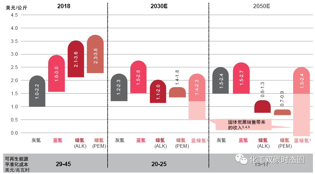 据测算,当可再生能源的成本降至20美元/兆瓦时以下时,绿氢将具有成本竞争力。随着世界各国加大对可再生能源投资力度,以及平准化能源成本的降低,规模效应有望于2030年实现。